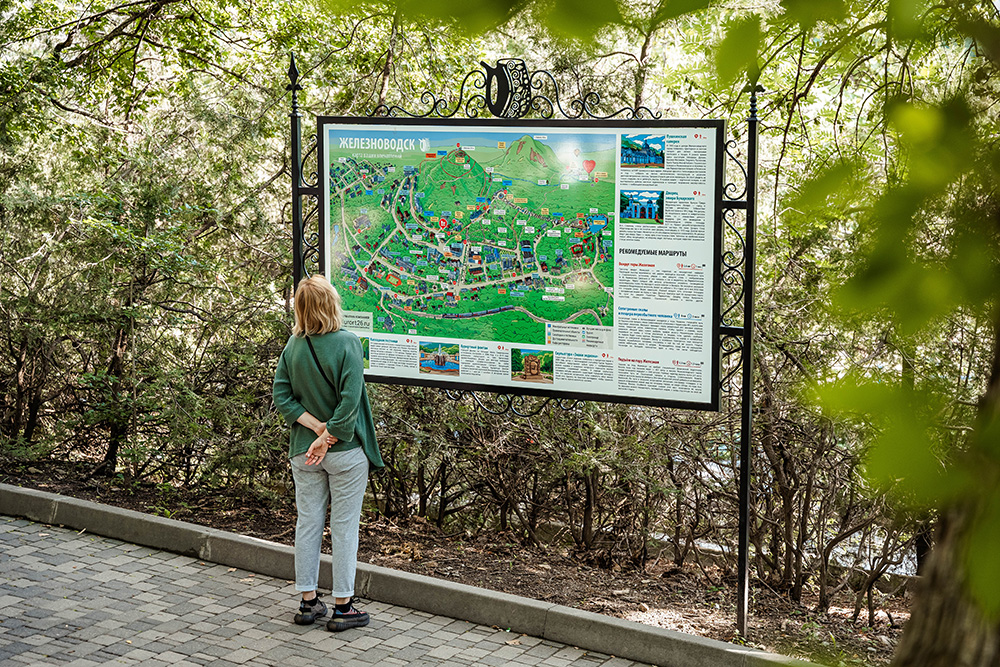 Вместе с администрацией мы выбрали лучшие места для расположения стендов и вписали их в городской ландшафт так, чтобы они не перекрывали достопримечательности и действительно были полезны. Всего мы установили в Железноводске восемь стендов с картами: